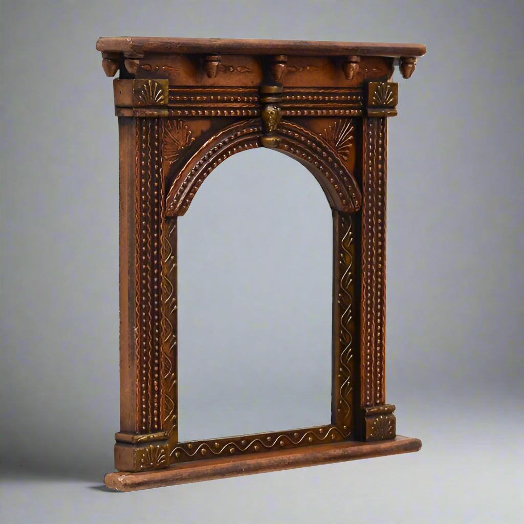 Whether used as a spiritual niche, a decorative wall frame, or a vintage-style mirror surround, it adds a layer of culture and artistry to any space. Designed by Indian artisans exclusively for EssentialFolds, it embodies the perfect blend of traditional craftsmanship and modern storytelling.